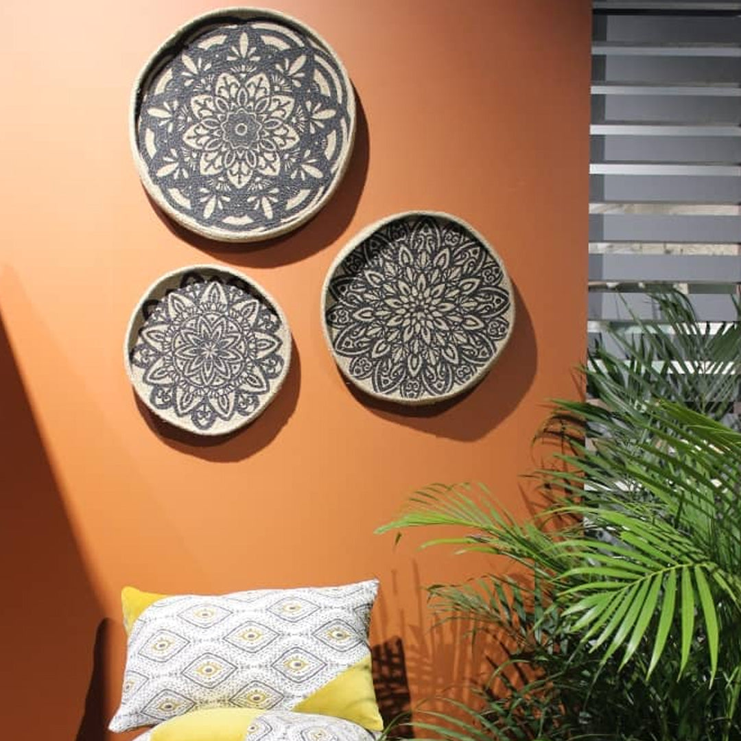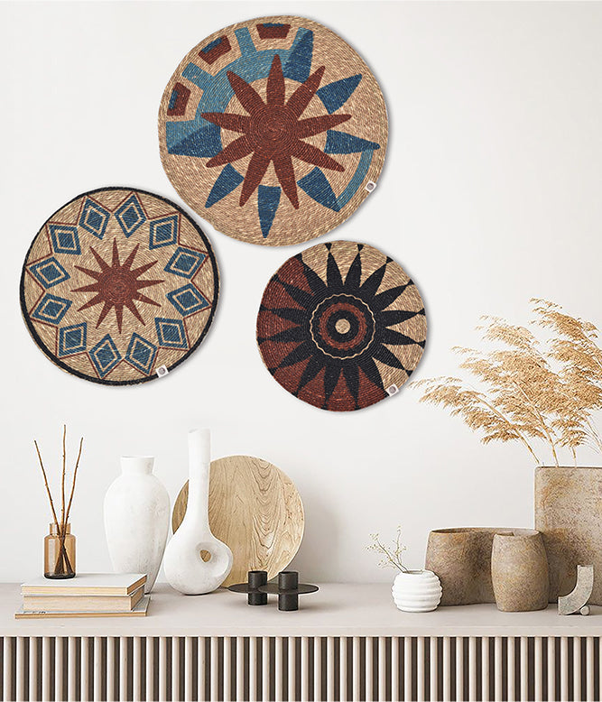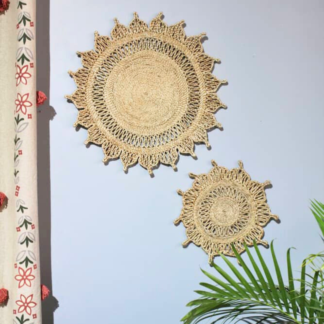 Add a look of bohemia chic and an elegant ethnic with these floral shaped jute wall arts. Each of these wall art pieces are tightly handwoven and have the natural jute coloring, that gives an eye catch to your home styling.