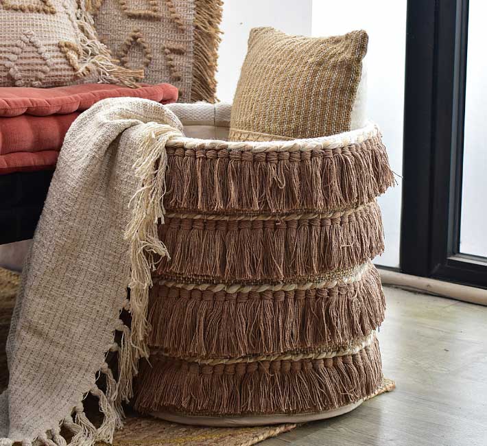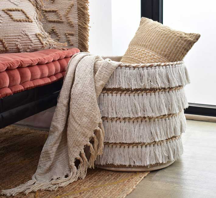 As the name suggests this basket is able to harmonize different elements, such as the natural fibres, delicate fringes, and colour combinations, creating a visually pleasing and balanced design.