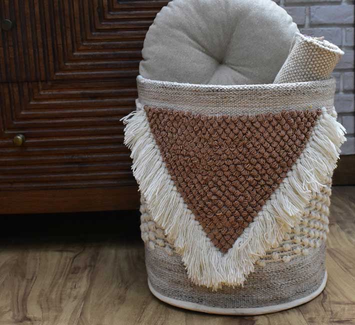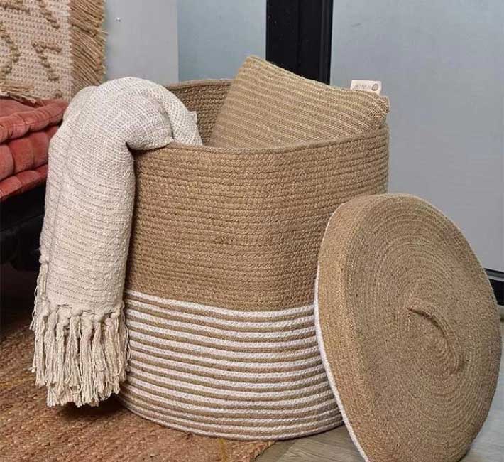 Introducing the “Coastal Retreat Basket,” a versatile and stylish storage solution that combines the natural charm of jute and cotton.