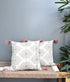 Introducing our exquisite set of two cushions, designed to add a touch of elegance to your living space. Crafted from 100% cotton, these covers feature an ivory base adorned with a mesmerizing tonal print in shades of grey. The print showcases an interesting mix of geometric shapes and boho-inspired elements, creating a balanced pattern that exudes inviting charm.