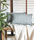 Our chic 30x50 cm lumbar cushion, woven from 100% cotton. Featuring an all-over aqua green zigzag pattern, this cushion brings a modern and energetic vibe to your decor, effortlessly adding a pop of color and personality.