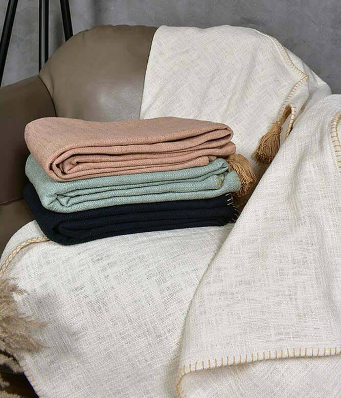We take pride in using sustainable fabrics, ensuring that your throws are not only luxurious but also environmentally friendly. Made with utmost care and attention to detail, our throws are available in four stunning colors: Pink Bloom, Powder Blue, Perfect Beige, and Old Navy. Choose the shade that best complements your personal style and decor preferences.