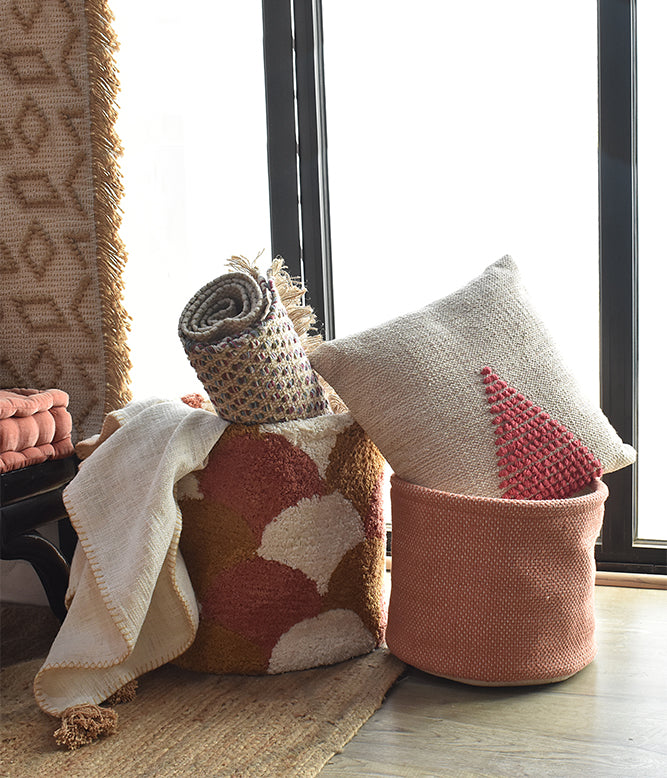 Elevate your space with our Boho Tufted Basket, a 100% cotton masterpiece. Its interesting colour combination and tufting detail add charm and texture, and fill your room with boho opulence. This basket seamlessly combines style and function, perfect for organizing essentials. Transform your home with this must-have addition today.